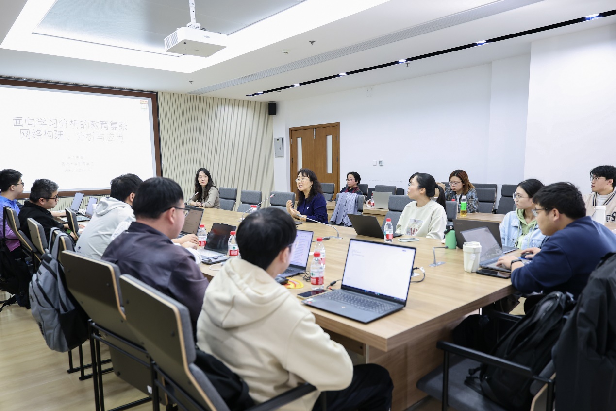 在随后的交流讨论环节,现场师生围绕冯诗惠团队建设的HINA开源工具平台的具体应用场景、基于教育复杂网络的课程设计、交叉学科研究选题等问题进行了提问,冯诗惠博士针对每个问题逐一细致回应,既分享了前沿研究思路,也提供了切实可行的实践建议,让在场师生受益匪浅。