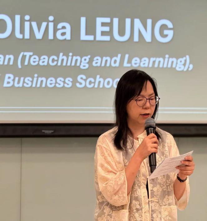 研学开班仪式于7月23日早上举行。香港大学经管学院副院长梁硕玲(Olivia LEUNG)教授对本次研学进行致辞。梁教授在会计学和商业管理领域具有深厚学术造诣和丰富教学经验,她在开班仪式上详细介绍了本次访学的课程安排和授课团队,并对同学们在学习过程中能够进行深入交流和探讨表达了殷切期望。随后,本次学生团长康博仁代表华东师大经管学院进行发言,对香港大学的授课老师以及行政团队为本次研学交流的精心安排和贴心付出表示感谢。