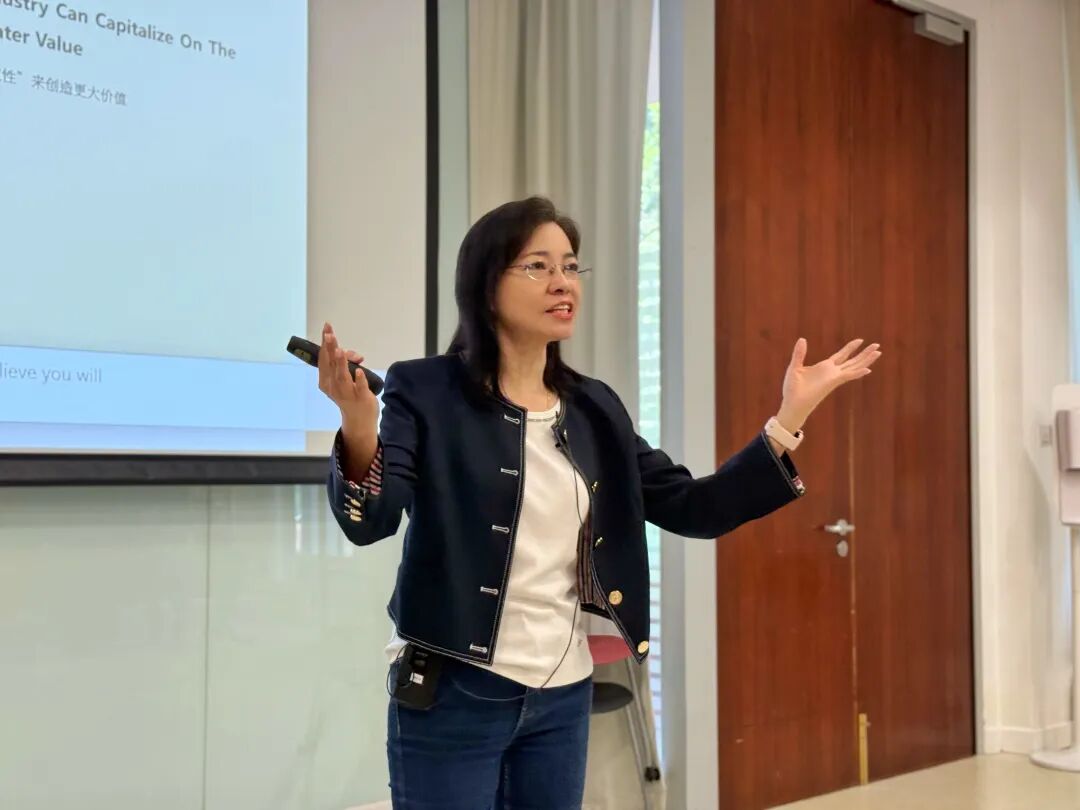 曾经负责K11项目的Rebecca WOO老师开展了“零售服务业如何利用当今时代的‘不确定性’来创造更大价值”主题讲座,内容围绕零售服务业现状、未来的机会以及消费新五感展开,通过Jellycat、LABUBU等案例阐释"消费新五感",同时邀请学员分组设计融合五感的商场方案并进行小组展示。