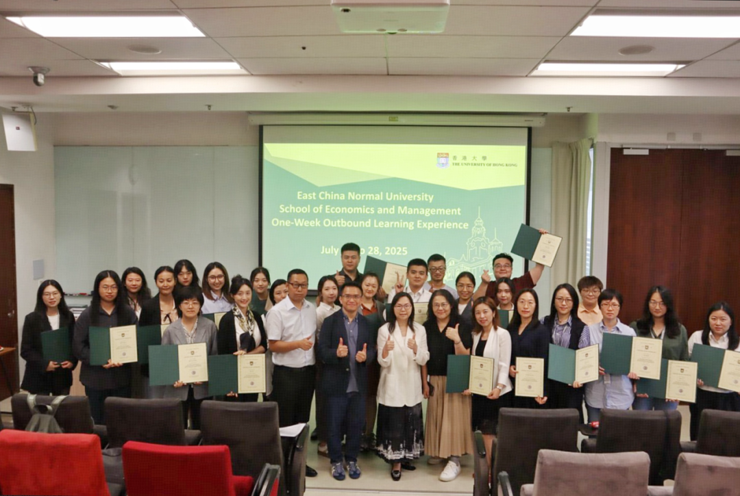 最后,香港大学主办方为华东师大经管学院每位研学团学员颁发结业证书,也为此次研学活动画上圆满句号。